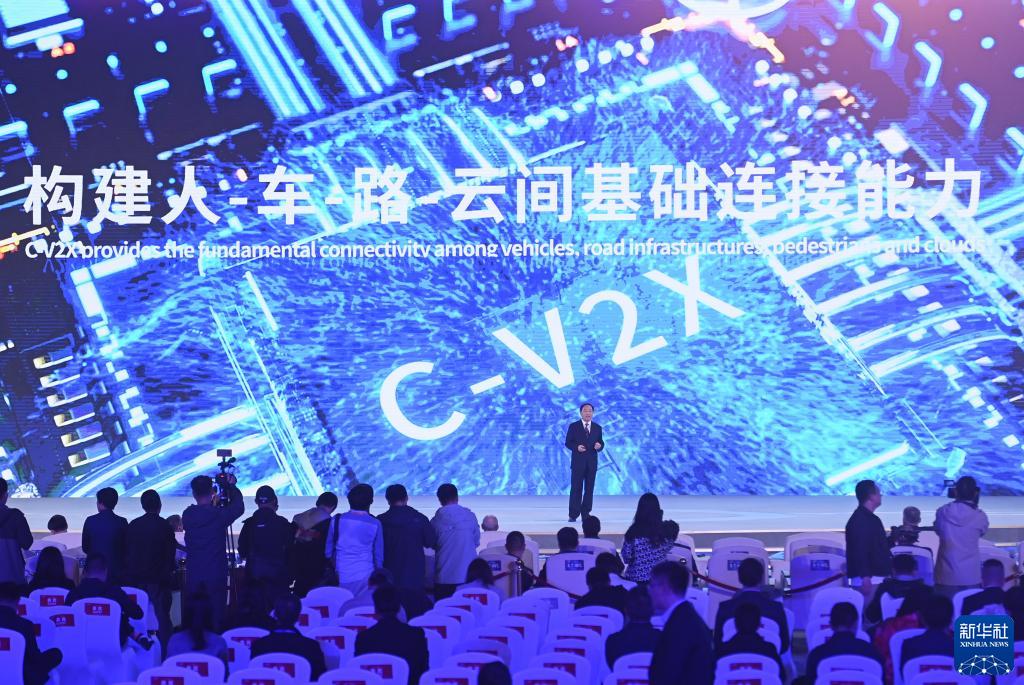 11月8日拍摄的C-V2X车联网通信关键技术研究及应用发布现场。