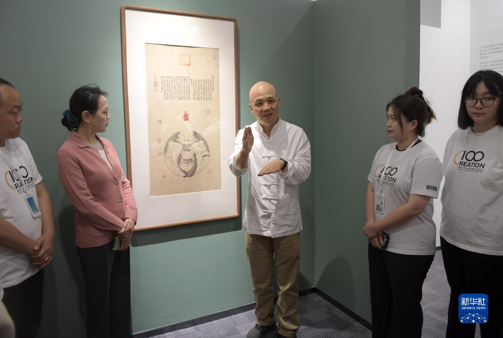 当日,十竹斋木版水印艺术作品展在暨南大学广州石牌校区举行。国家非遗项目木版水印技艺代表性传承人魏立中在展览现场为学生导赏、授课,并指导学生体验木版水印手作的乐趣。