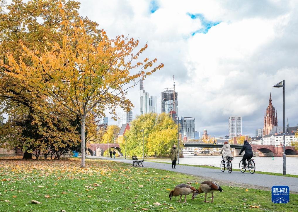 这是11月8日在德国法兰克福拍摄的美因河畔秋日景象。