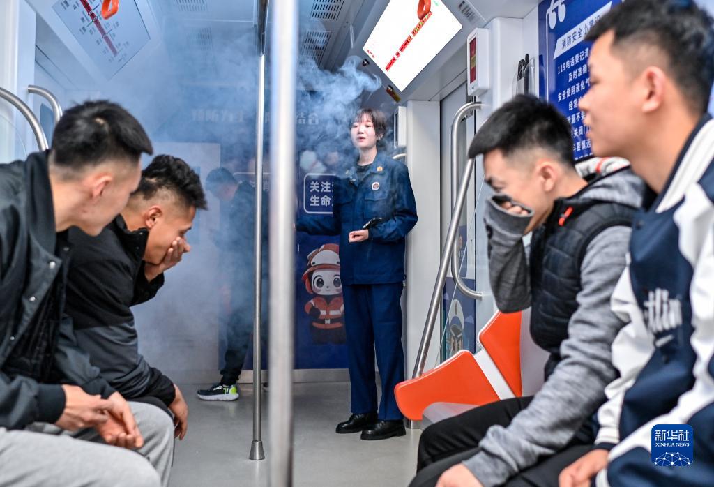 11月9日,观众在长春市消防科普教育基地内的地铁模拟区体验消防逃生。