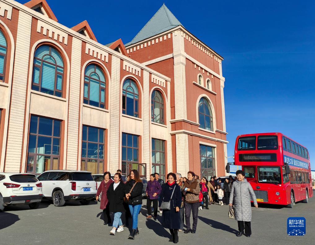 11月7日,游客乘坐大巴抵达巴克图口岸中哈边民互市丝路文化商品城。