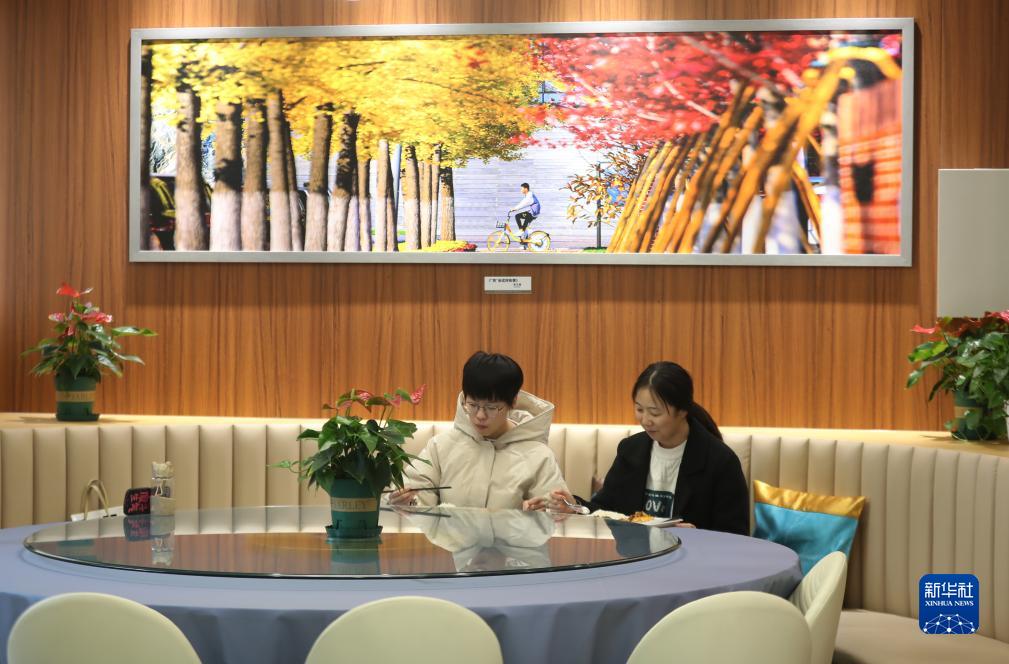 11月9日,学生在沈阳农业大学三食堂就餐。