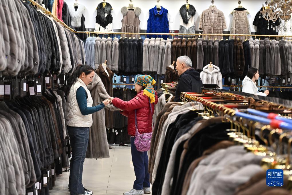 11月8日,游客在中哈霍尔果斯国际边境合作中心中方区域选购服装。