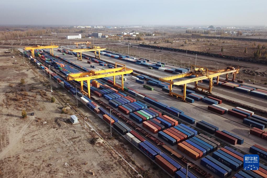 霍尔果斯铁路口岸站(无人机照片,11月8日摄)。