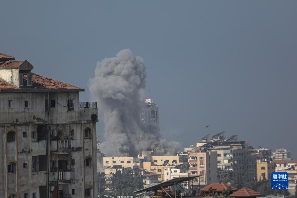 11月9日,加沙城建筑遭以色列军队空袭后升起浓烟。