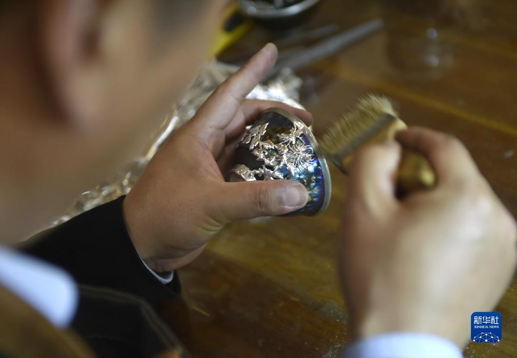 河南省郏县金镶玉制作技艺是国家级非物质文化遗产代表性项目,历史悠久,独具文化内涵和艺术价值。据介绍,金镶玉制作技艺原为对有瑕疵或破损的玉石、茶具等器物,用铜、锡等金属丝片进行掩饰、修补的镶嵌工艺,后来逐步发展成为在陶瓷、紫砂等器物表面镶嵌不同金属(或合金)图纹装饰的独特工艺。