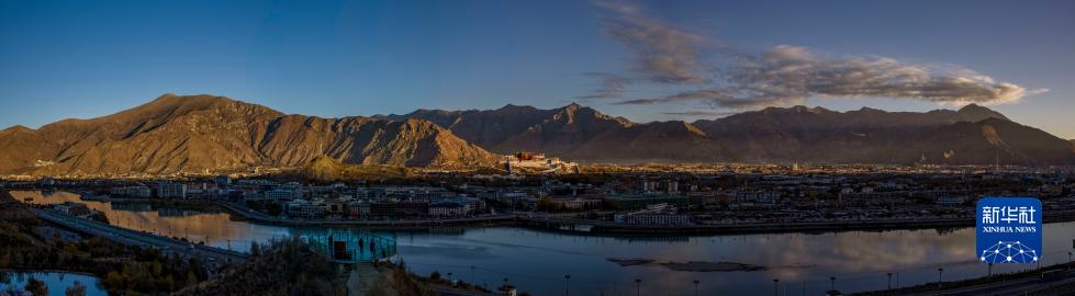 这是11月10日在南山公园拍摄的日出时分的拉萨(拼接照片)。