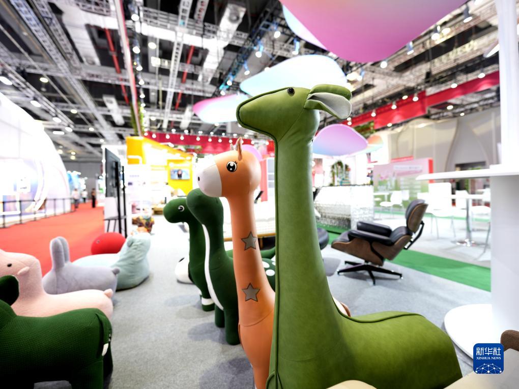 11月5日在第六届进博会消费品展区拍摄的新加坡卡通家居产品。