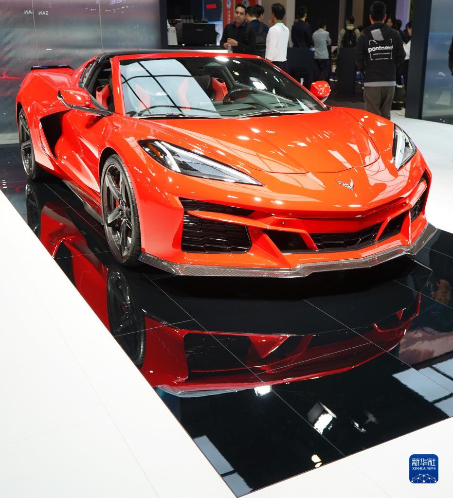 11月10日在第六届进博会汽车展区拍摄的雪佛兰科尔维特E-Ray混动跑车。