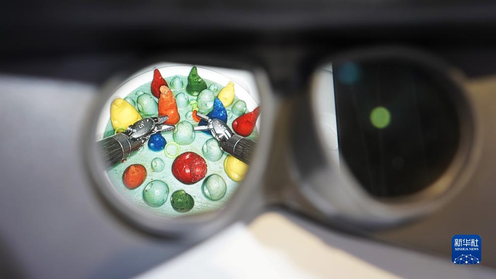 11月7日在第六届进博会医疗器械及医药保健展区复星健康展台拍摄的国产达芬奇手术机器人模拟手术视角。