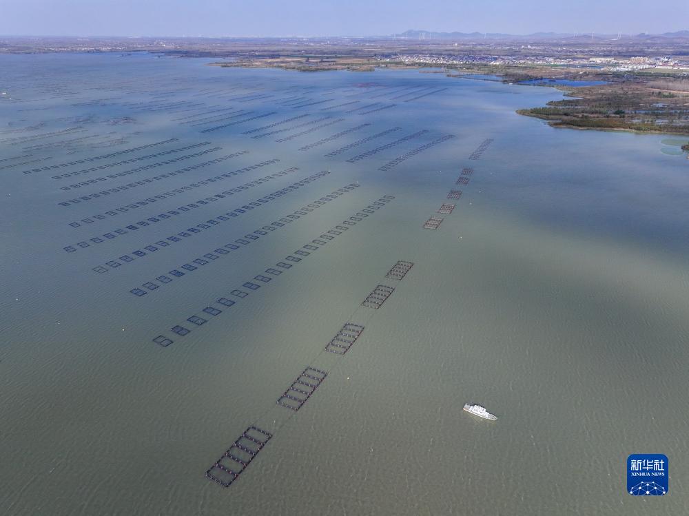 这是11月10日拍摄的连云港石梁河水库标准化网箱养殖设施(无人机照片)。