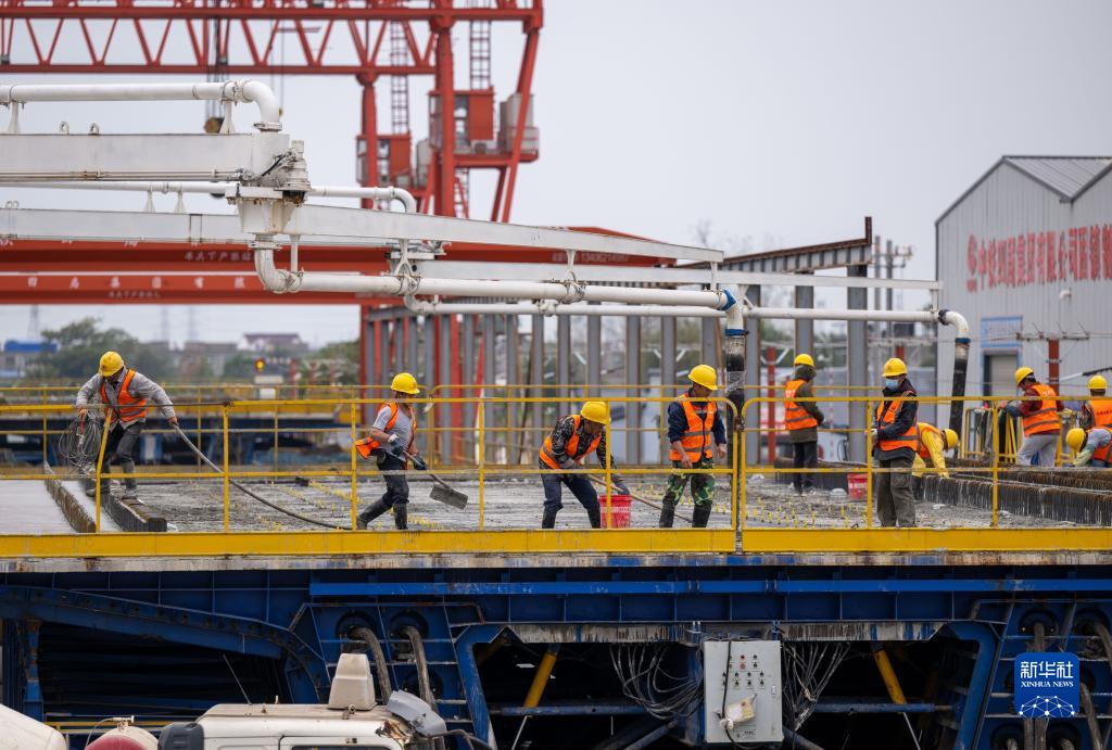 近日,在中铁四局淮宿蚌城际铁路建设工地,施工人员抓紧施工,确保建设进度。淮宿蚌城际铁路途经安徽省淮北市、宿州市、蚌埠市,线路全长约161公里,设计时速350公里,建成后将成为皖北城市群连接合肥都市圈及长三角地区的便捷通道。