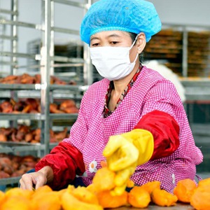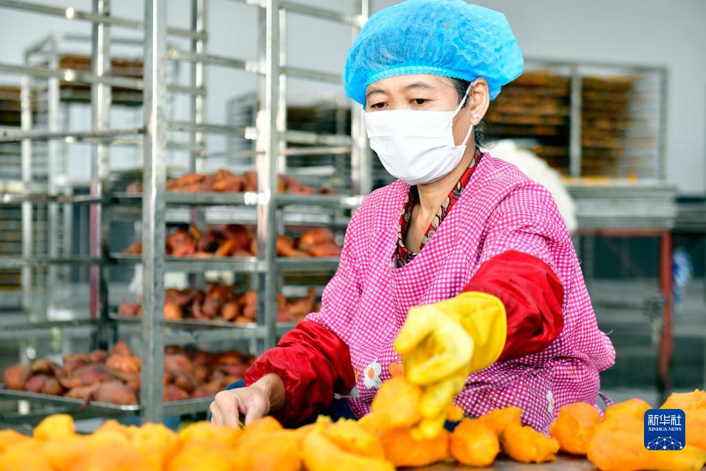 11月11日,在五莲县潮河镇魏家薯干专业合作社,工作人员在加工薯干。