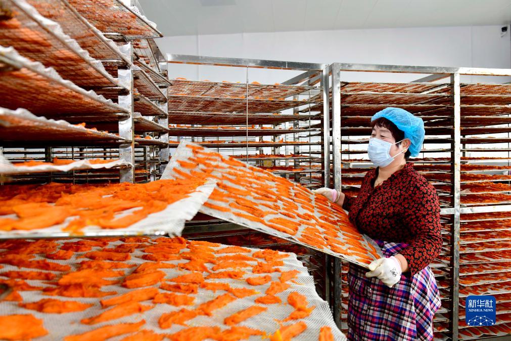 11月11日,在五莲县潮河镇魏家薯干专业合作社,工作人员在加工薯干。