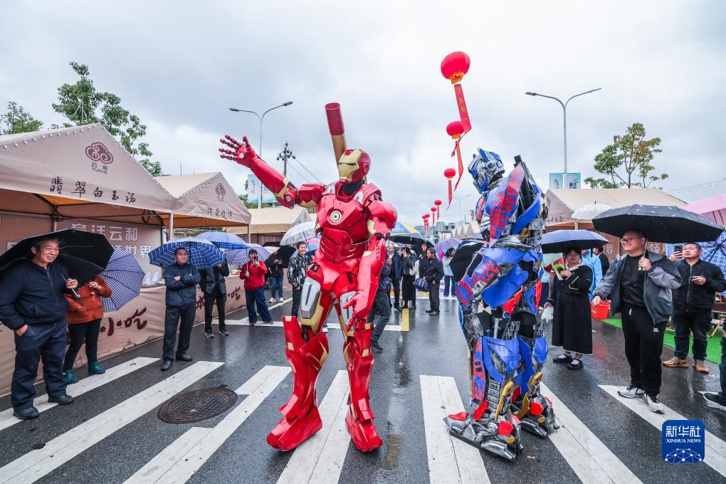11月11日,童话云和木制玩具节上举行的踩街道表演。