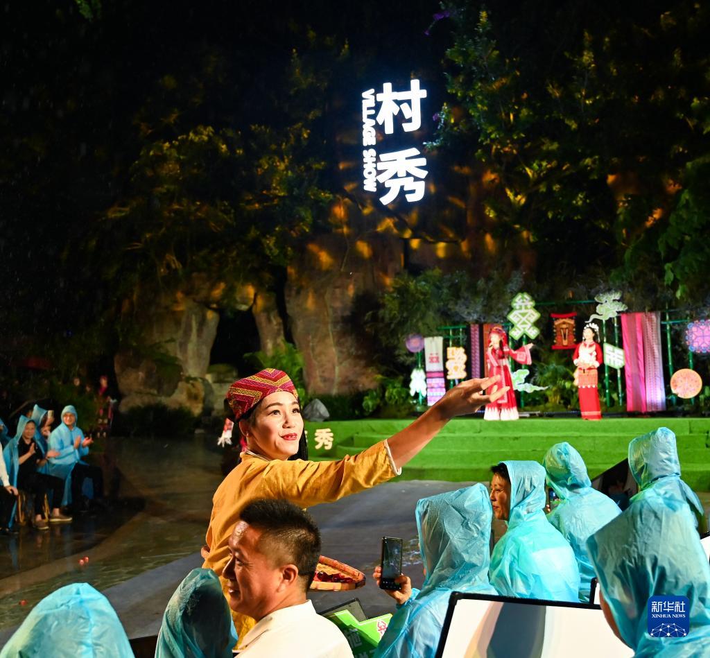 当日,海南省五指山市民族时装“村秀”特别专场活动在五指山市通什镇小岛公园举办。由五指山各乡镇选出的民族时装“村秀”代表,以黎族苗族文化、民间技艺等为内容走秀,向人们展现乡村特色与民族文化的传承创新。