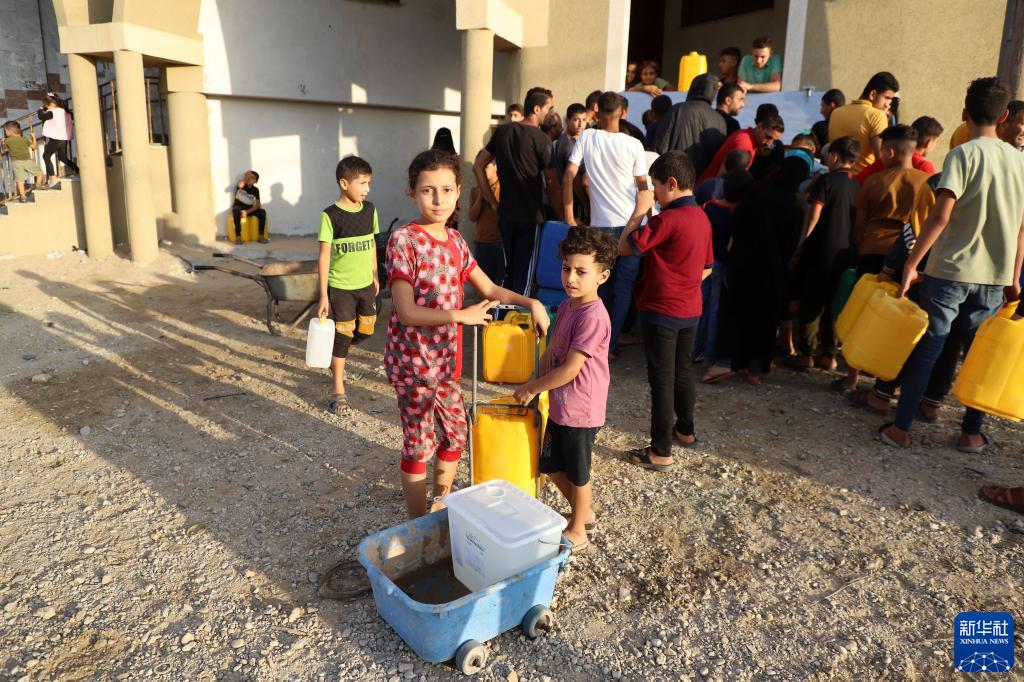 11月11日,人们在加沙地带南部城市汗尤尼斯排队打水。