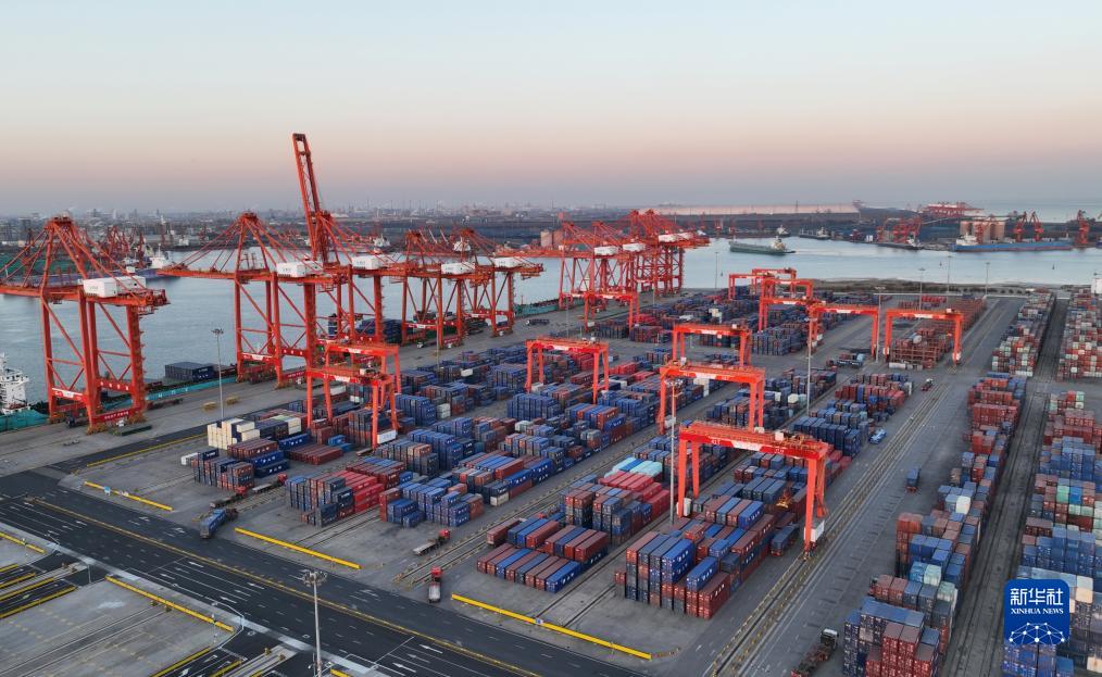 11月11日拍摄的唐山港京唐港区集装箱码头堆场(无人机照片)。