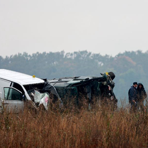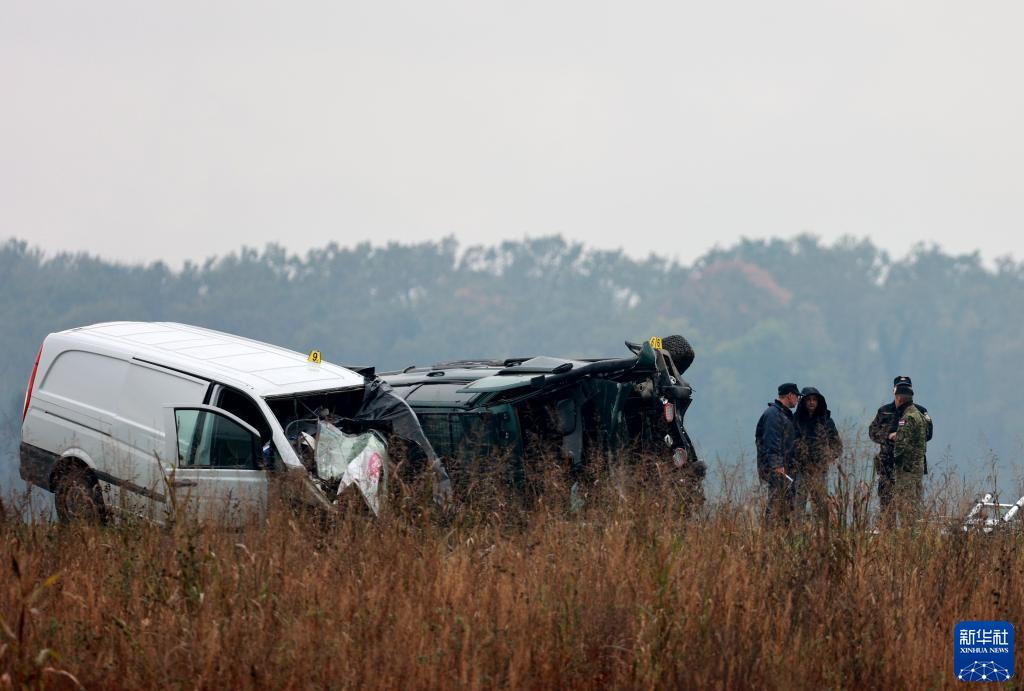 11月11日,在克罗地亚东部城市温科夫齐,工作人员聚集在巴诺日奇造成的交通事故现场。