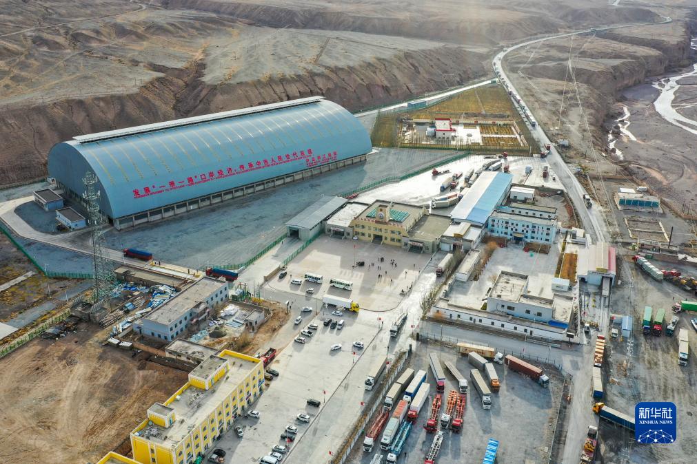 这是在新疆伊尔克什坦口岸拍摄的新疆南疆地区首个储配煤保税库(左上,11月7日摄,无人机照片)。