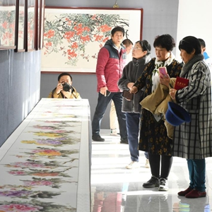 11月12日,观众参观第十一届“大美平谷·水墨周庄”书画展。