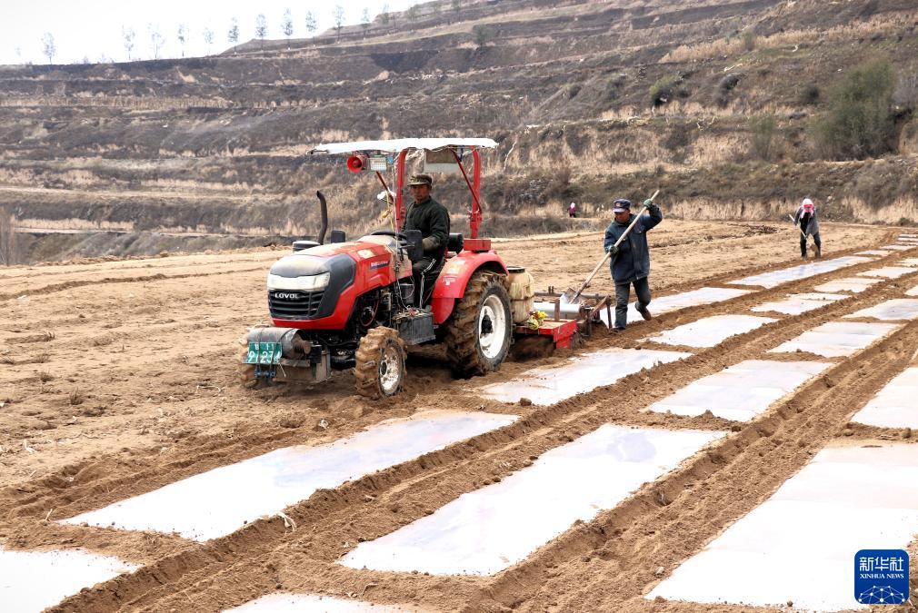 连日来,在位于黄土高原的甘肃省平凉市静宁县,农户抓住秋冬季节降水较多、土壤墒情较好、地面尚未封冻的有利时机,对耕地进行覆膜作业,为来年春播打下基础。