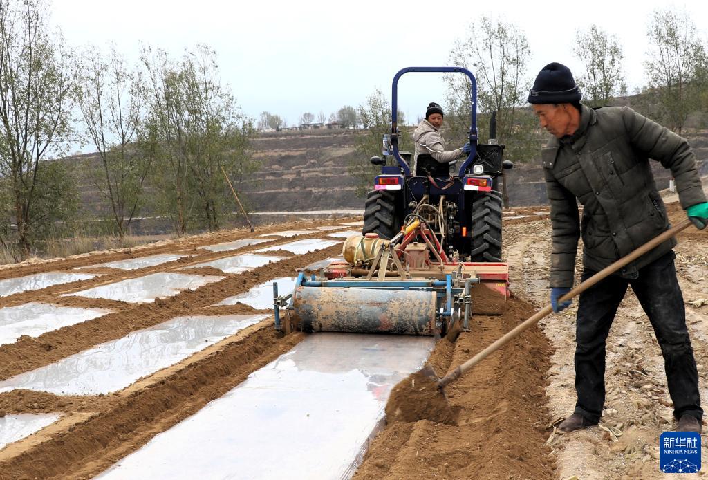 连日来,在位于黄土高原的甘肃省平凉市静宁县,农户抓住秋冬季节降水较多、土壤墒情较好、地面尚未封冻的有利时机,对耕地进行覆膜作业,为来年春播打下基础。