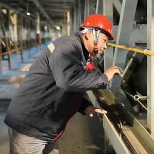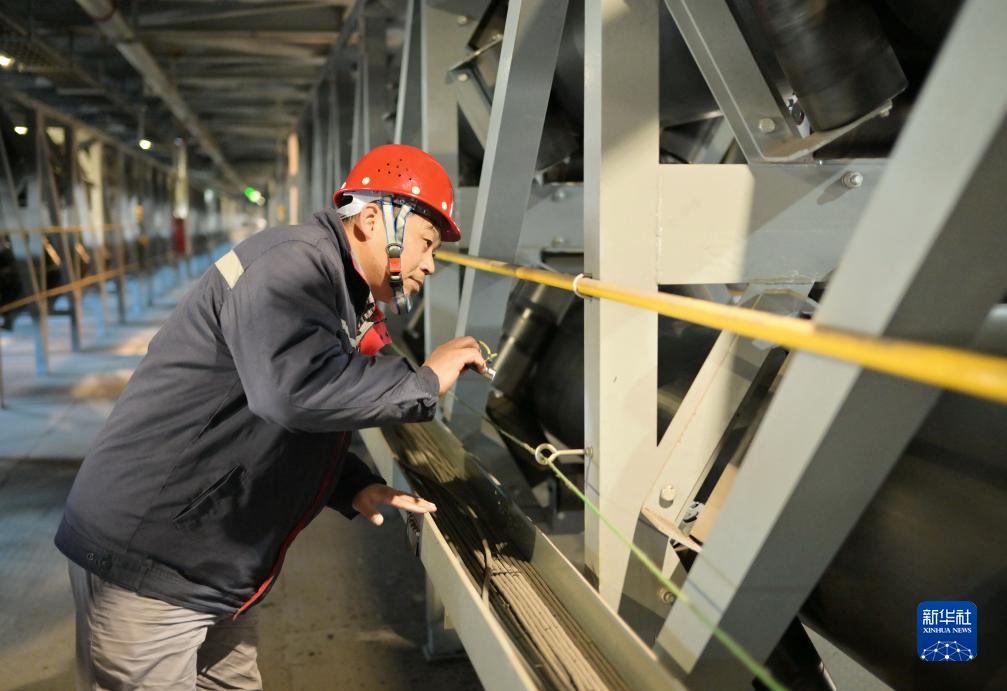 11月12日,工人在唐山海港经济开发区管带机廊道查看运行状态。