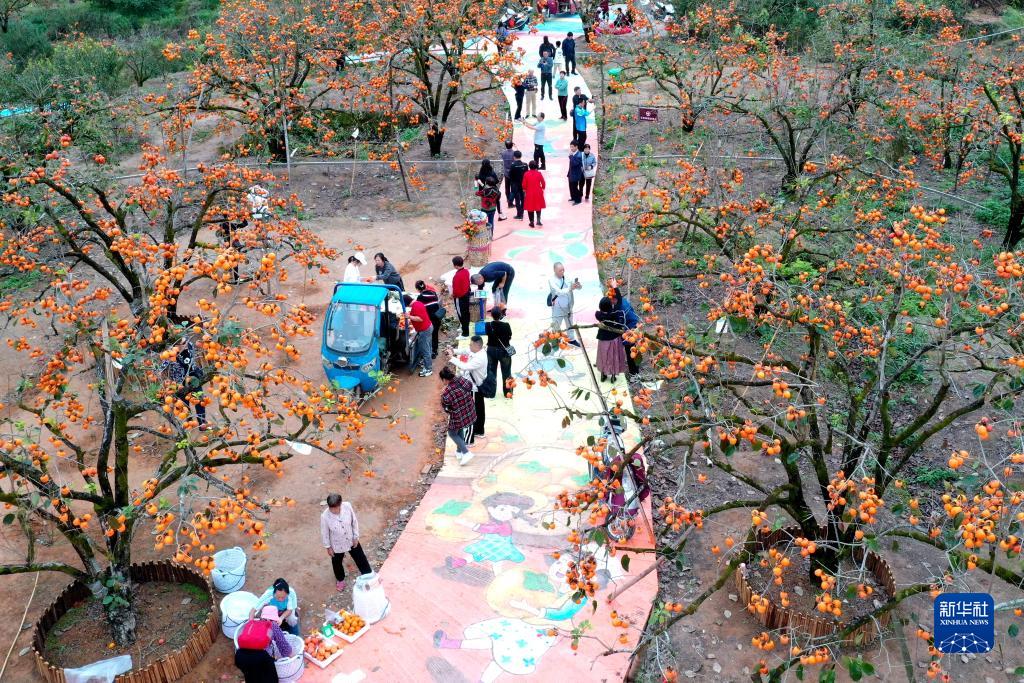 初冬时节,福建省宁德市古田县利洋村柿子园的枝头挂满了橘红的柿子,给这个小山村增添了亮丽的色彩,吸引游客前来游玩。