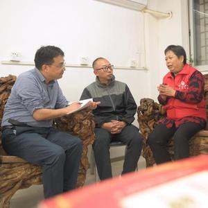 11月12日,福州市园林中心、西湖公园管理处管理人员在福州西湖公园向“市民园长”陈素芬(右二)了解群众对西湖公园的意见和建议。