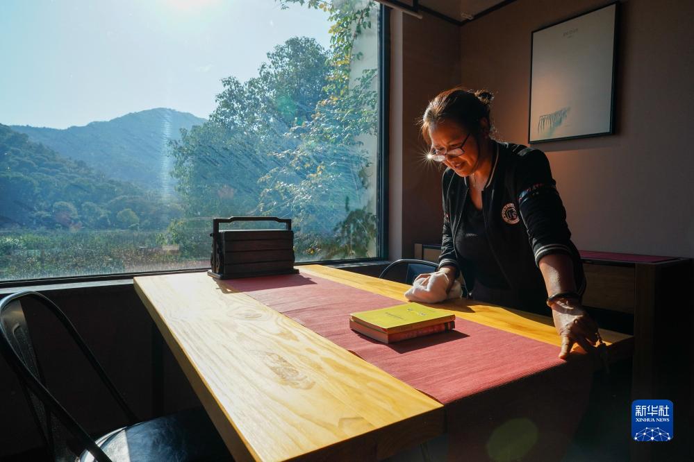 工作人员在树山村的一家民宿内整理打扫(11月2日摄)。