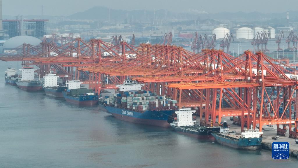 海轮在钦州港集装箱码头装卸货物(11月12日摄,无人机照片)。
