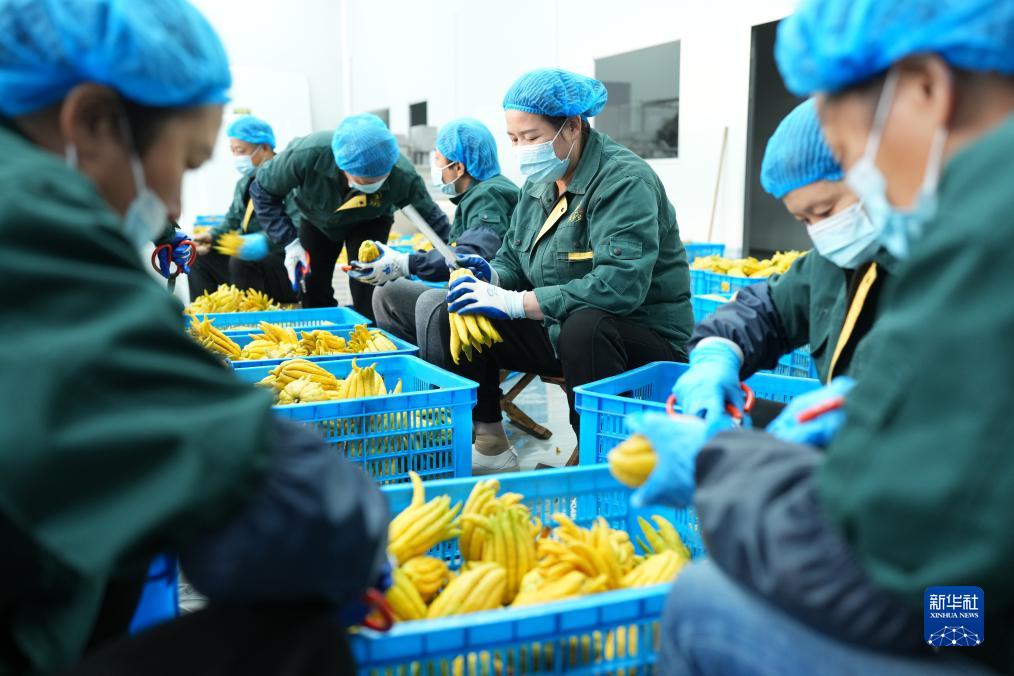11月13日,在金华市婺城区浙江金佛手生物医药科技有限公司,工作人员在处理佛手鲜果。