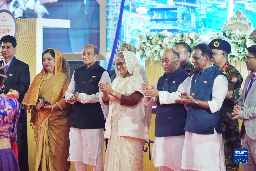11月12日,孟加拉国总理谢赫·哈西娜(中)等在诺尔辛迪出席项目落成仪式。