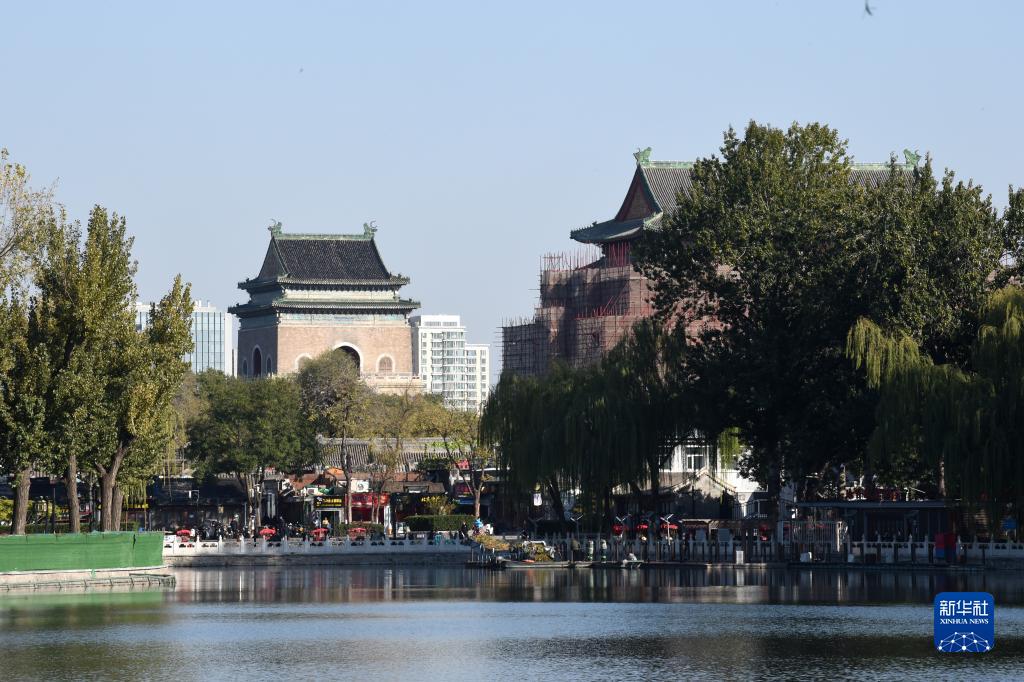 远眺北京钟鼓楼(11月7日摄)。钟鼓楼位于北京中轴线的最北端,两楼前后纵置,气势雄伟。作为元、明、清三代都城的报时中心,至今已有700多年的历史。