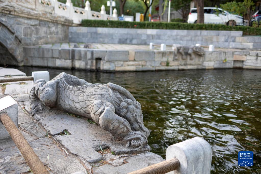 北京万宁桥的镇水兽(11月6日摄)。万宁桥位于北京地安门外大街中部、什刹海东岸,是北京中轴线上最古老的桥梁,至今已有700多年历史。作为北京中轴线与大运河玉河段的交汇点,自元代始建起,万宁桥一直承担着南北交通的重要功能。