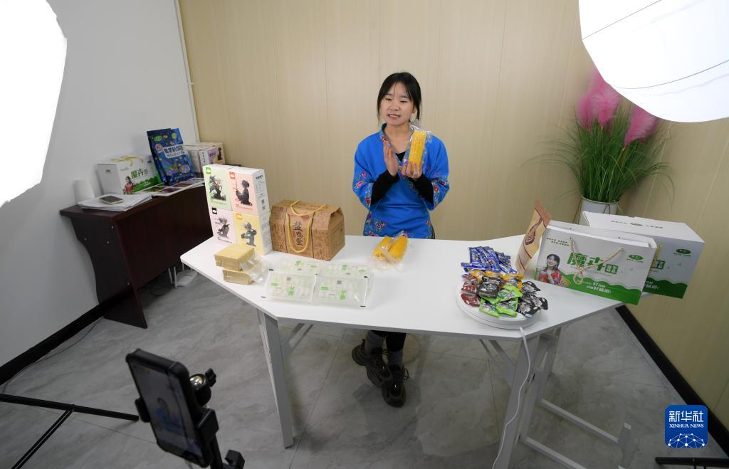 11月14日,在施秉县产业园区一家电商企业的直播间,主播在推介本地村民种植的低糖甜糯鲜食玉米。
