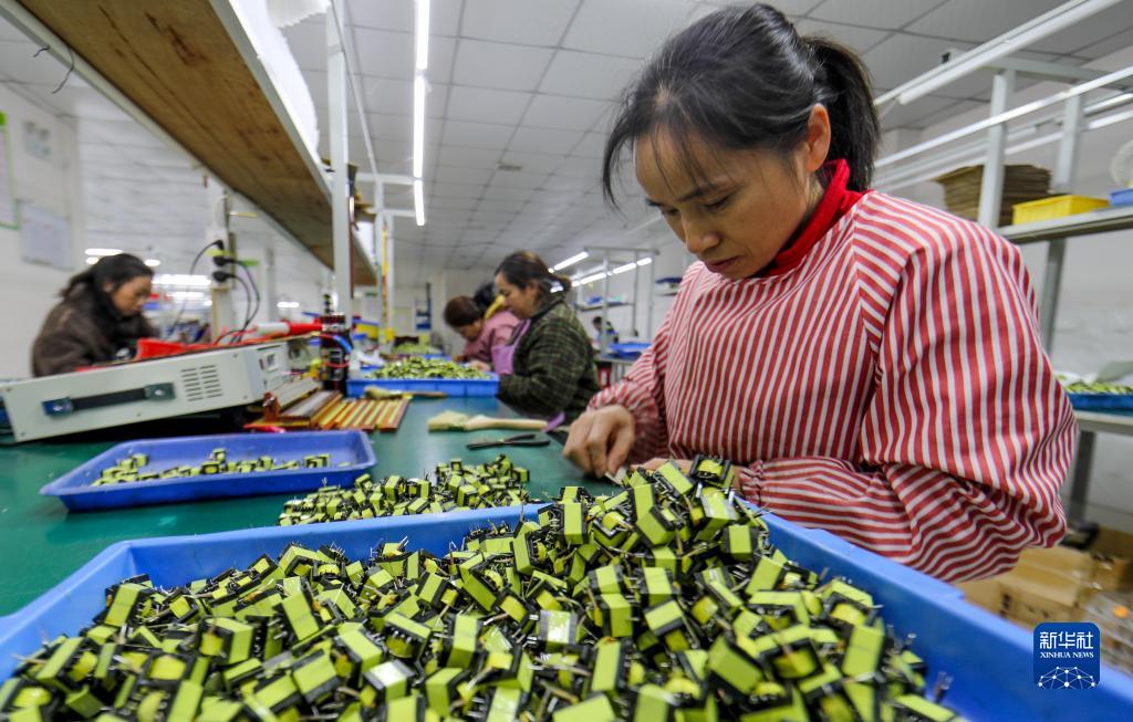 11月14日,工人在施秉县一家电子企业生产车间工作。