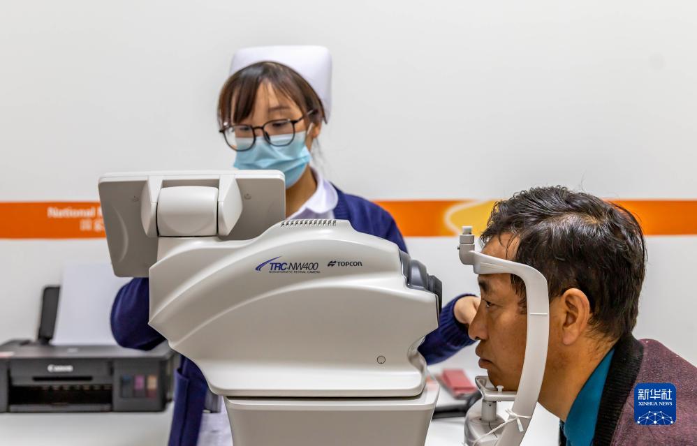 11月14日,护士在贵州省黔西市人民医院东桥路院区住院部为患者排查糖尿病视网膜并发症。