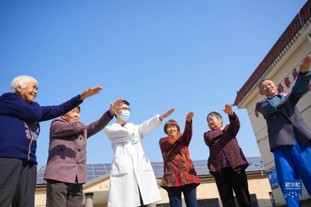 11月14日,在浙江省湖州市德清县钟管镇东舍墩村,医护人员教授村民防治糖尿病保健操。