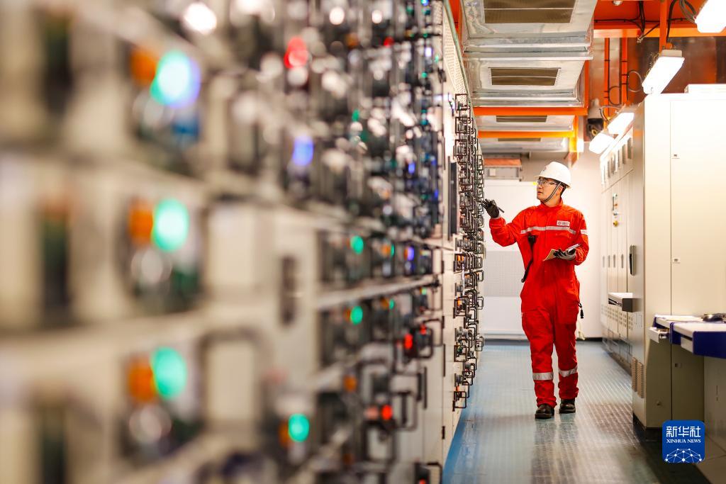 11月14日,工人在检查平台设备电力系统。