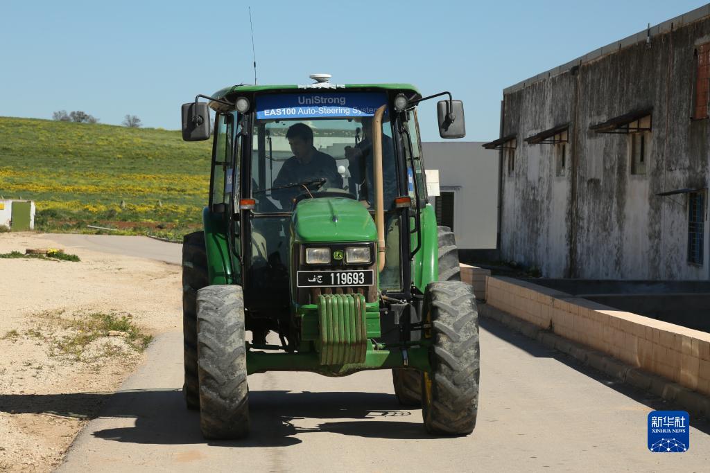 这是在突尼斯迈贾兹巴卜高等农业工程学校拍摄的一辆农用拖拉机。中国工程师给这辆拖拉机安装了使用北斗卫星导航系统的自动驾驶设备(2019年3月10日摄)。