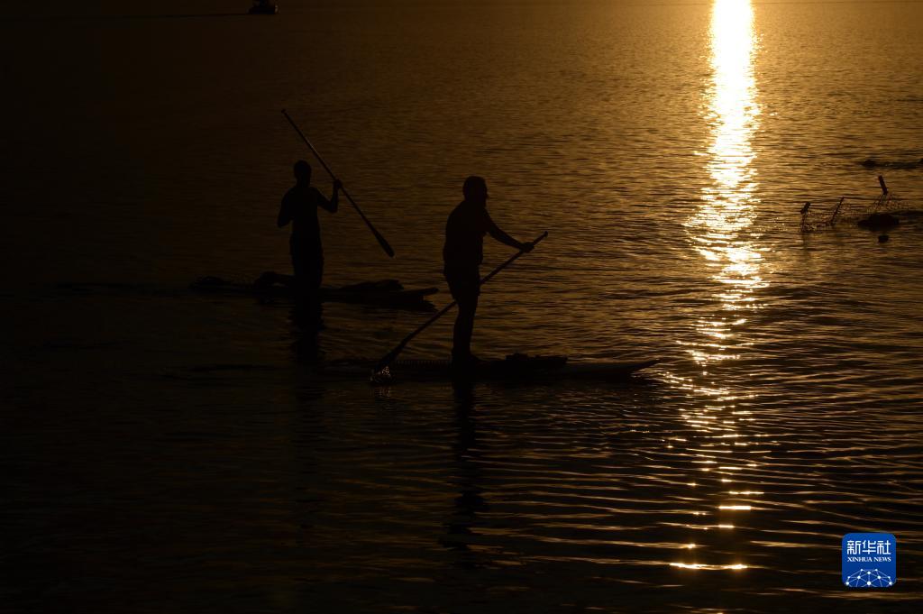 11月14日,两名男子在巴西首都巴西利亚帕拉诺阿湖中消暑。