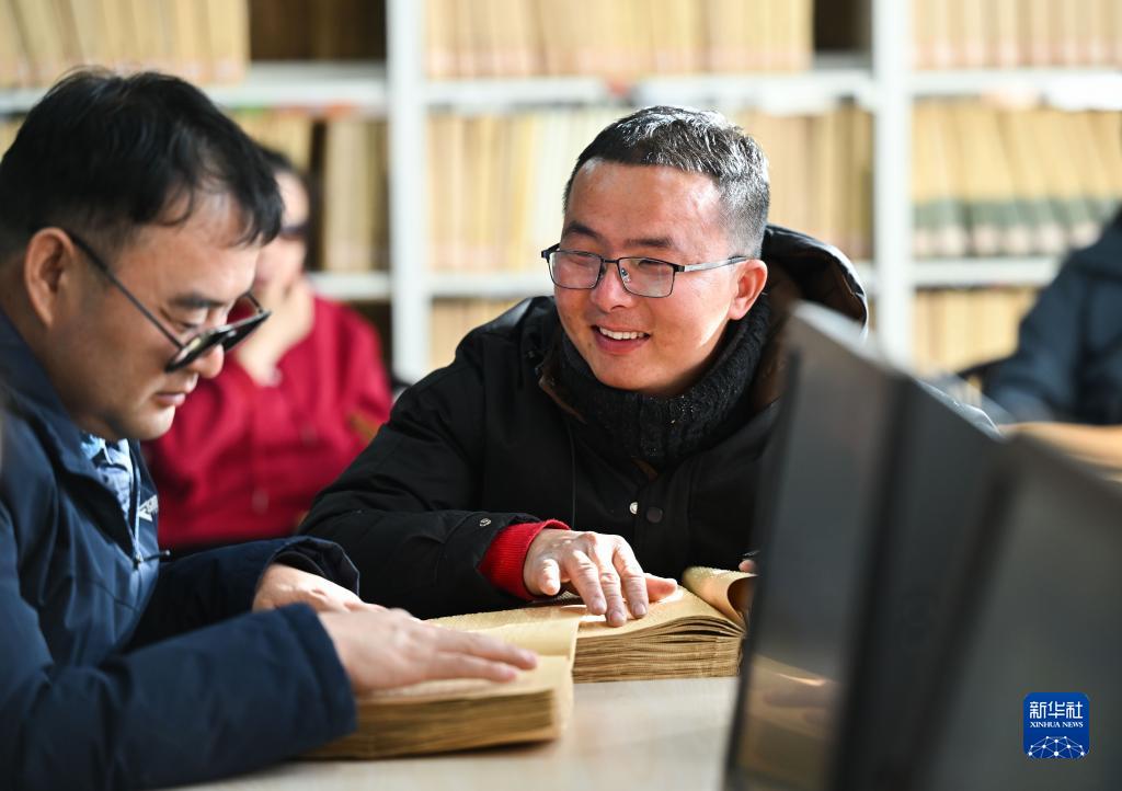 11月14日,视障人士在内蒙古乌拉特前旗图书馆视障阅览室内交流。