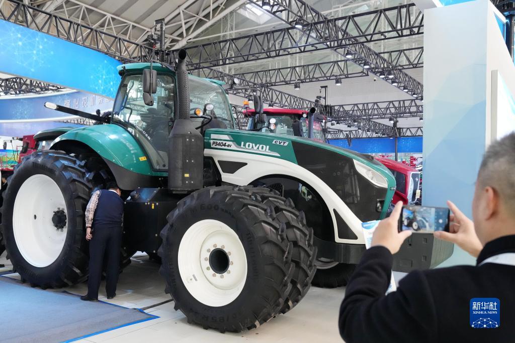 11月15日,在首届中国(黑龙江)国际绿色食品和全国大豆产业博览会大豆农机装备展区,参会者拍摄一款农机。