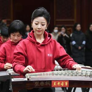 11月15日,中央音乐学院在校师生及全国各地一线古筝教师在活动中演奏古筝曲目《盛世华筝》。