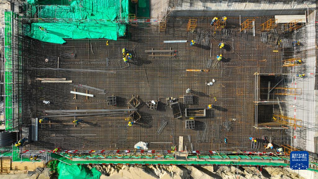 11月15日,工人在徐大堡核电站1号机组施工(无人机照片)。
