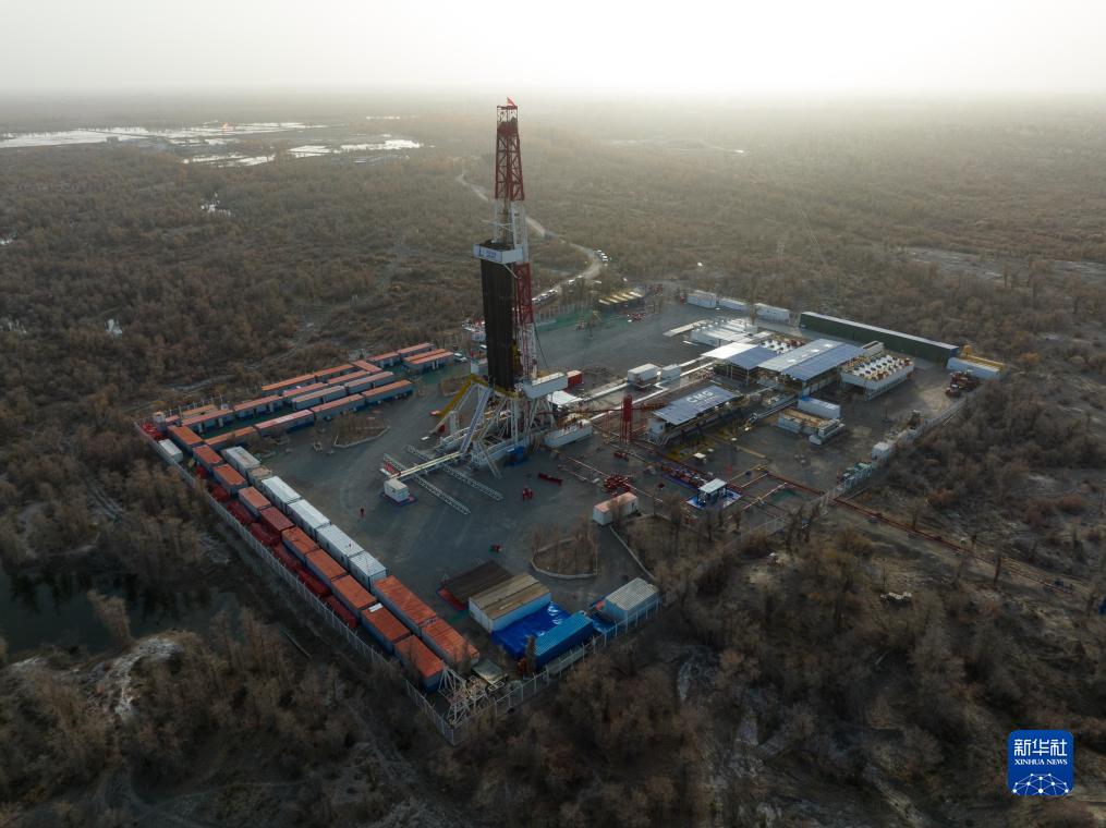 11月15日拍摄的中国石化“深地一号”跃进3-3XC井(无人机照片)。