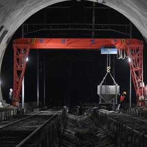 11月15日晚,中铁十一局的建设者在杭衢铁路(建衢段)天池山隧道无砟轨道浇筑施工现场作业。