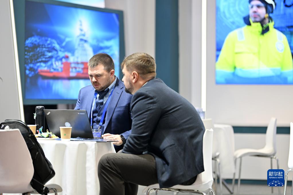 11月16日,在国家会展中心(天津),展商在博览会上交流。